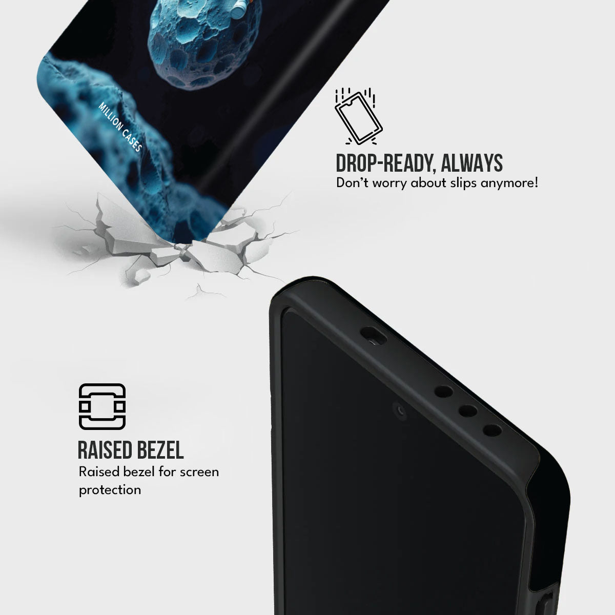 • Safety: Keeps the phone safe from accidental drops and scratches.