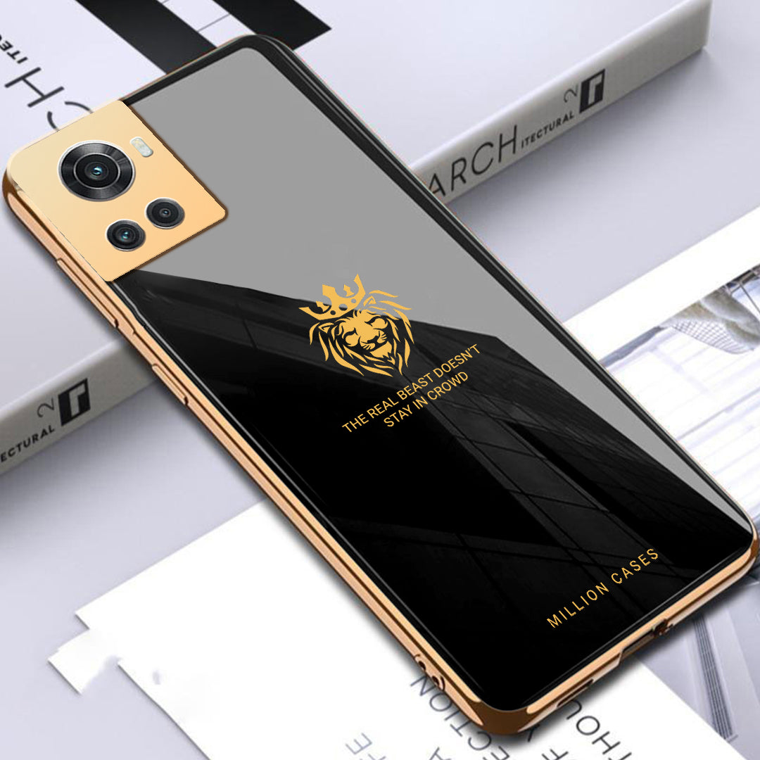 An Attractive Electroplating Glass case with a Popular LION Theme with an inspiring quote "THE REAL BEAST DOESNT STAY IN CROWD " for your premium Smartphone. The frame of the phone case has been Galvanized around the Camera Lens and Border, which makes it Attractive.